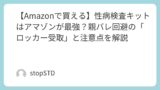 外箱には「日用品」「雑貨」「プラスチック容器」などと書かれて届きます。性病検査キットだとは配達員さんにも家族にも分かりません。 - 郵便局留めが可能: