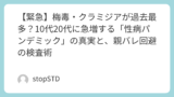 - 量が増えた・水っぽい:クラミジアの可能性。