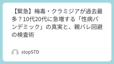 【緊急】梅毒・クラミジアが過去最多?10代20代に急増する「性病パンデミック」の真実と、親バレ回避の検査術