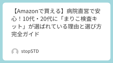 「Amazonで性病検査キットが買えるのは知ってるけど、怪しいメーカーのは怖い…」「自分の体に使うものだし、ちゃんとした病院のキットがいい」そんなあなたに今、Amazonで圧倒的に選ばれているのが「まりこ検査キット」です。なぜ人気なのか?そ...